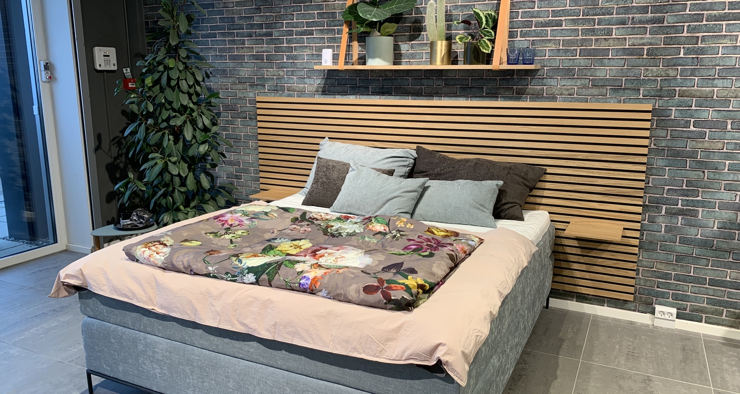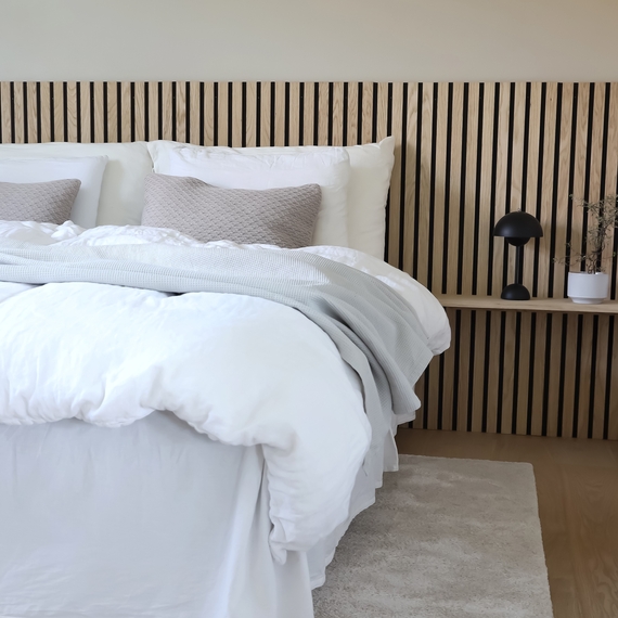 Wie in allen anderen Räumen in Ihrem Heim sind Ihrer Fantasie und Kreativität beim Einsatz von Wandpaneelen von I⋅Wood keine Grenzen gesetzt. Wir haben viele Beispiele mit Akustikpaneelen als Bettkopfteil gesehen und können Ihnen ein paar tolle Tipps geben.