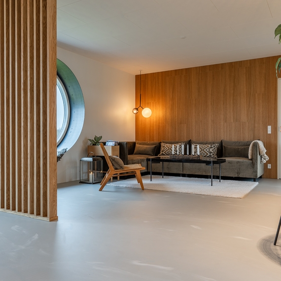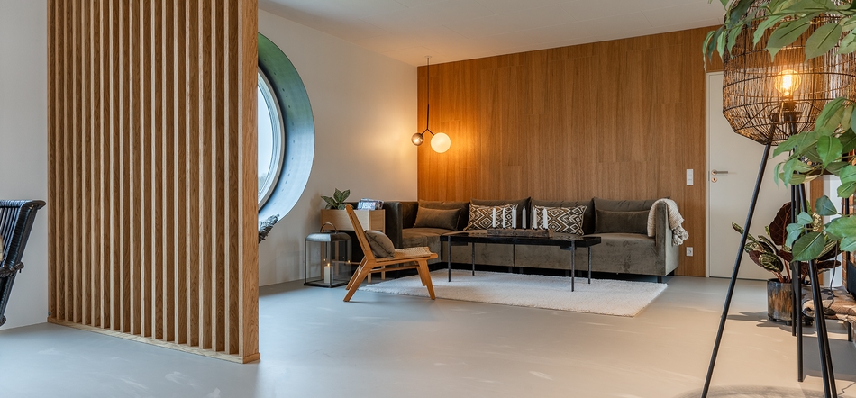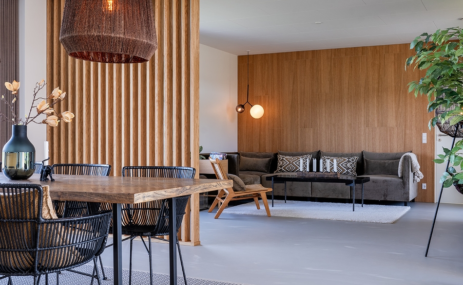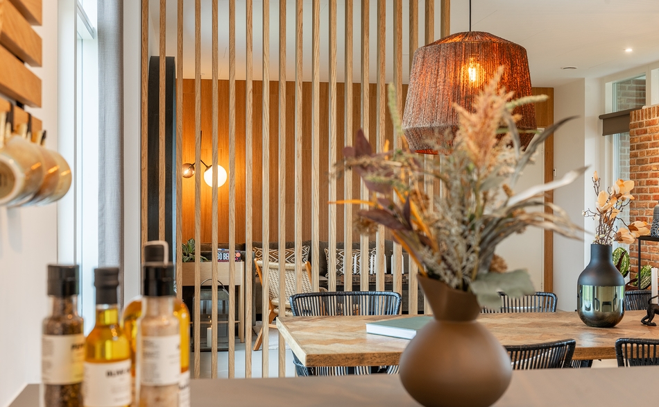 "Wir haben auch viele Kunden, die sich große, offene Räume wünschen. Hier bringt die Lamellenwand viel zur Inneneinrichtung bei und schafft die Zonen, die wir zum Leben brauchen.“