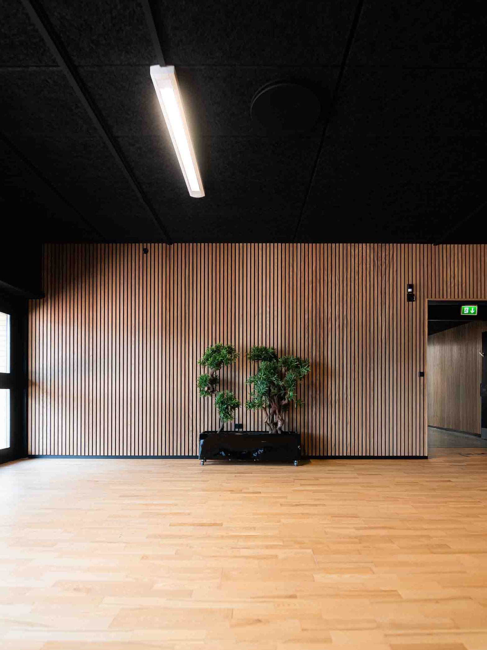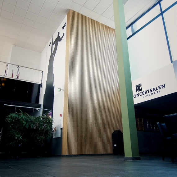 Das KulturCenter Skive wollte die Akustik verbessern und zudem dem gesamten Kulturzentrum ein grüneres Profil und ein einheitlicheres Design verleihen. Deshalb wurden an mehreren Stellen in den vielen Gemeinschaftsbereichen des Zentrums Akustikpaneele von I-Wood montiert.