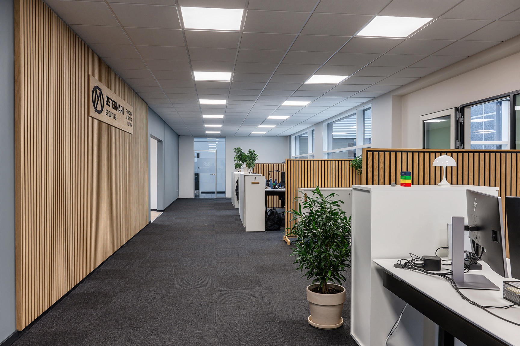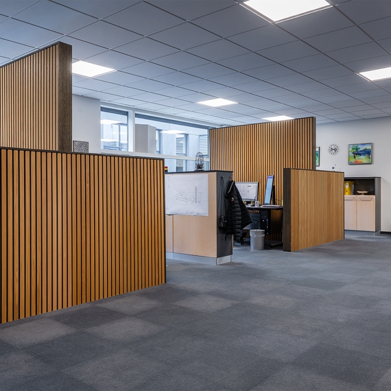Flexi Wall von I-Wood Denmark hat die offene Bürolandschaft bei Østermark durch Verbesserung der Akustik revitalisiert. Die Lösung waren neue Trennwände, die Schall absorbieren und Hintergrundgeräusche reduzieren. Mit seinem mobilen Design passt sich Flexi Wall leicht an wechselnde Bedürfnisse an und ist somit eine ideale, langfristige Lösung für moderne Arbeitsplätze.