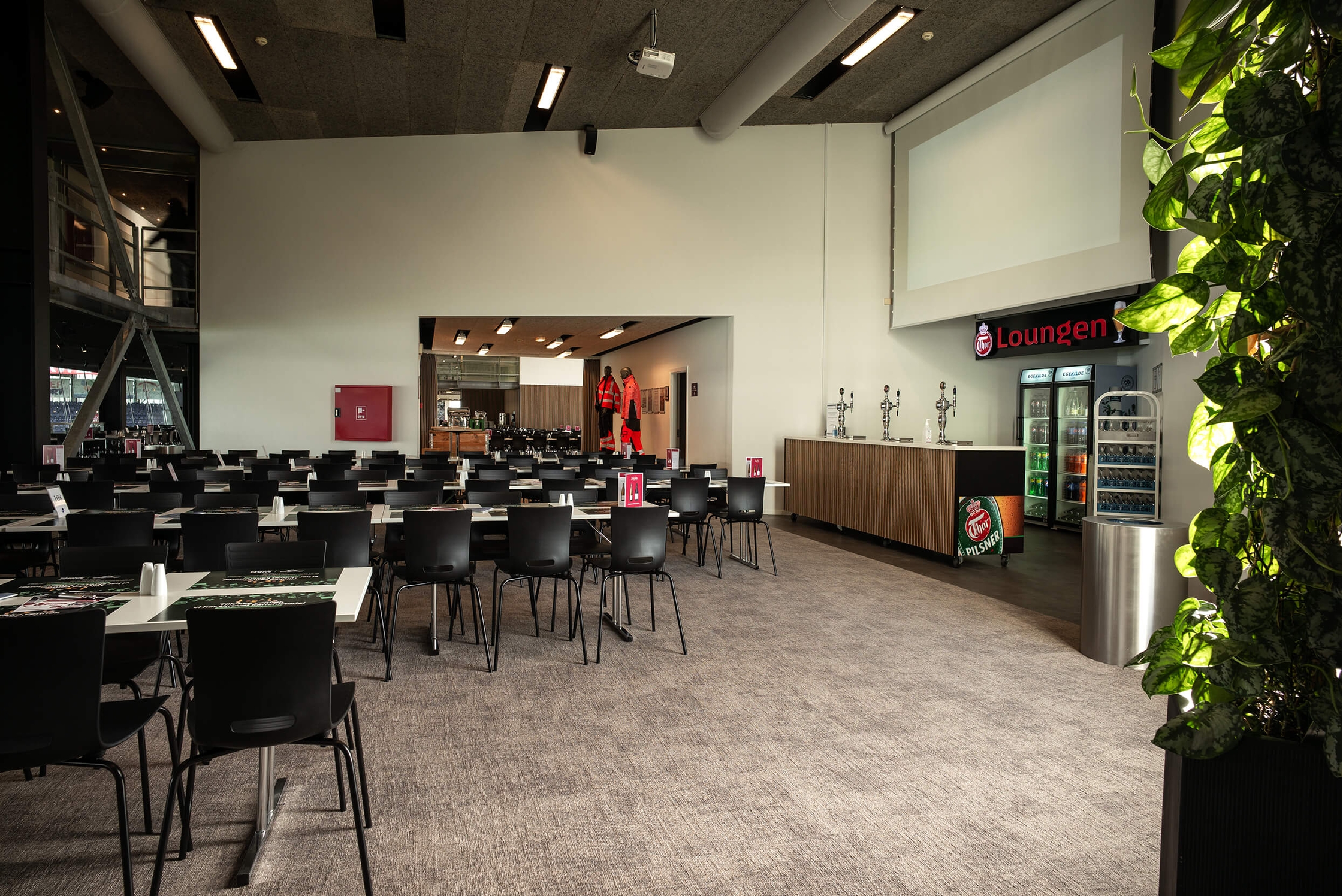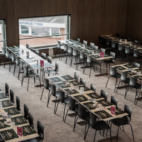 Der Aufenthaltsraum des Randers FC wurde modernisiert. Mit den neuen Wandpaneelen von I-Wood Denmark® hat der große Raum mit den hohen Decken nicht nur optisch ein neues Gesicht bekommen.