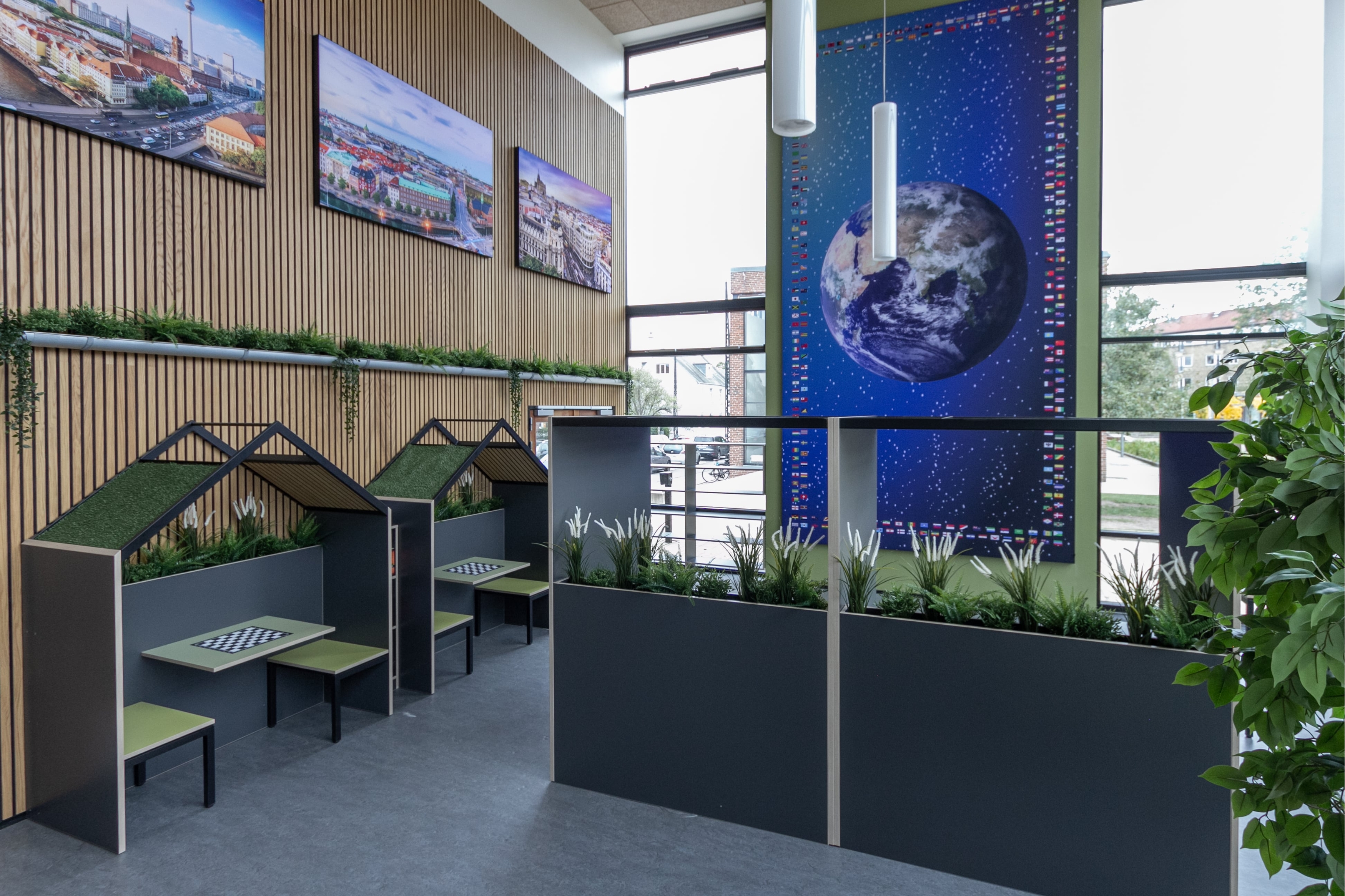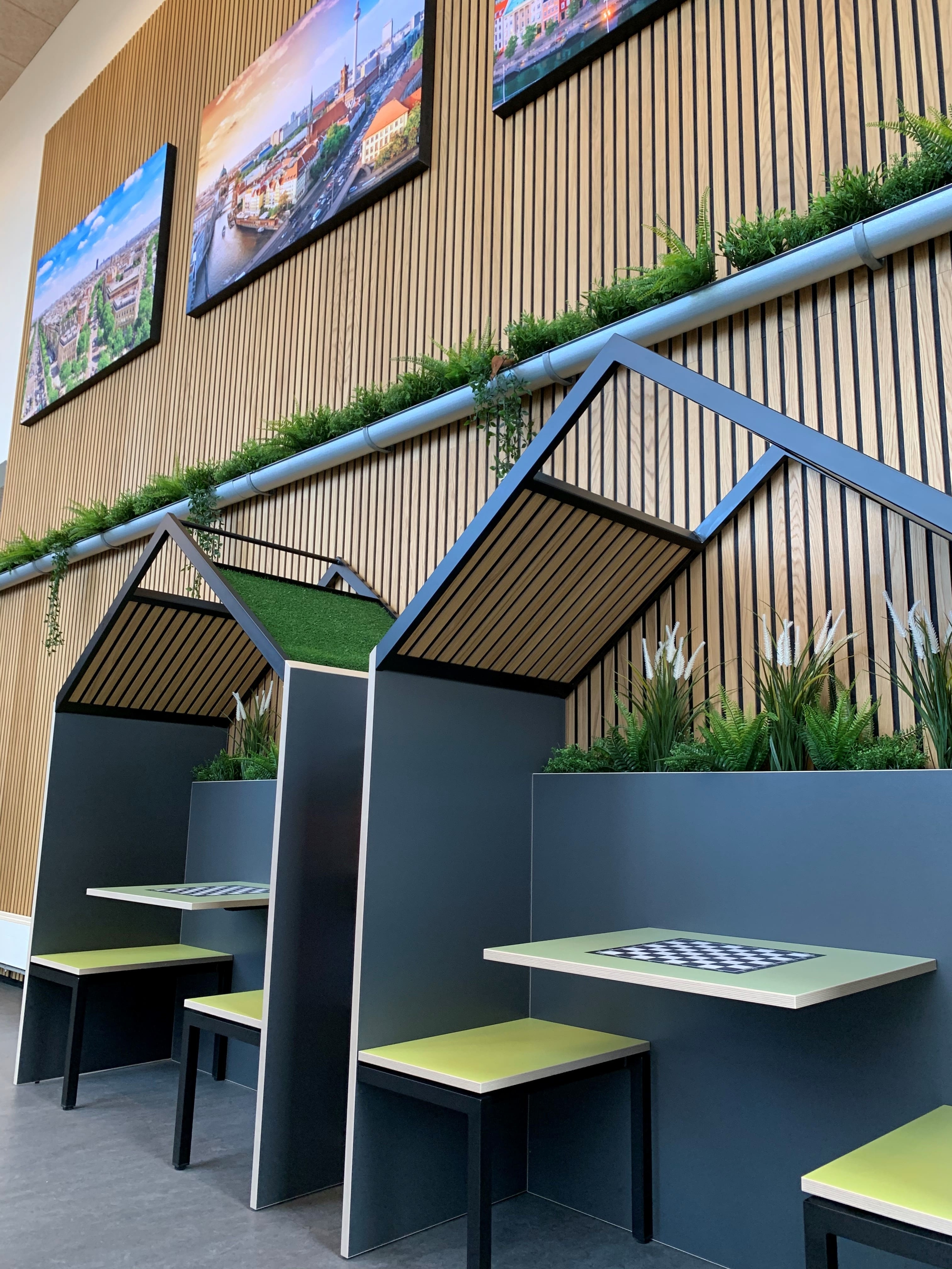 In der Utterslev-Schule in Kopenhagen kommen viele Menschen in großen Räumen zusammen, was die Akustik sowohl für Kinder als auch für Erwachsene beeinträchtigen kann. Mit Wandpaneelen von I-Wood Denmark® wurde die Akustik verbessert und gleichzeitig die Ästhetik aufgewertet, sodass die Kinder nun in einem schönen und angenehmen Umfeld lernen. Angeregt durch die Stadt wurden im Gebäude verschiedene Bereiche unter anderem mit kleinen Häusern geschaffen. Dieses Projekt wurde in Zusammenarbeit mit Ultima K abgewickelt.