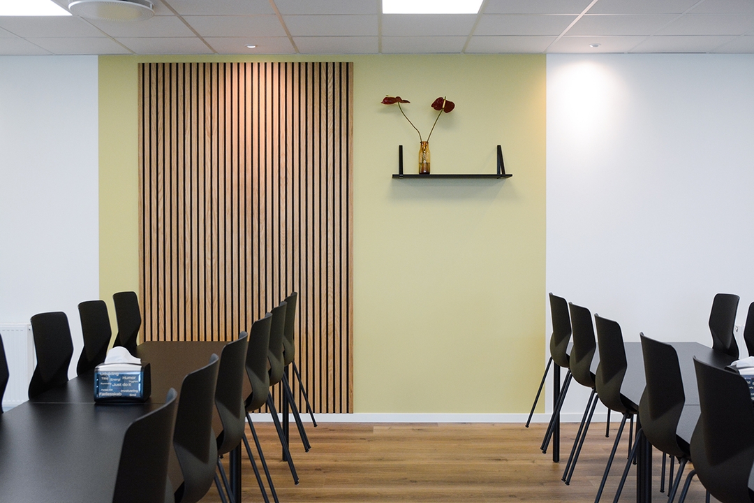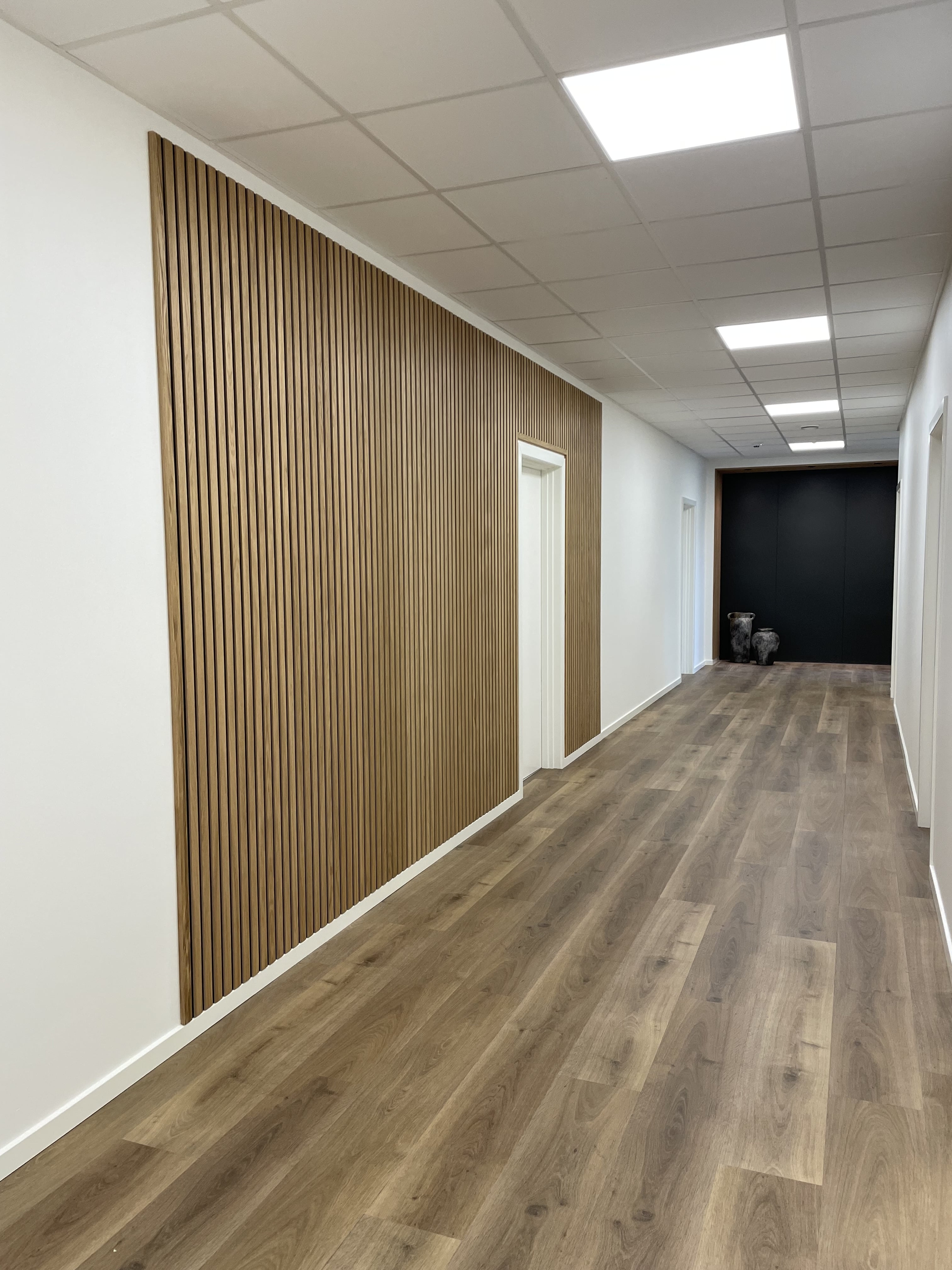 Bei billigarbejdstøj.dk haben wir geholfen, die Kantine sowohl in ästhetischer als auch in akustischer Hinsicht aufzuwerten. Mit Holzpaneelen von I-Wood Denmark® wurden neue Farben ins Spiel gebracht und die Natur in den Raum geholt. Hierdurch wird der Geräuschpegel verringert, dem die Mitarbeiter bei billigarbejdstøj.dk an einem geschäftigen Arbeitstag in einer vollen Kantine ausgesetzt sind.