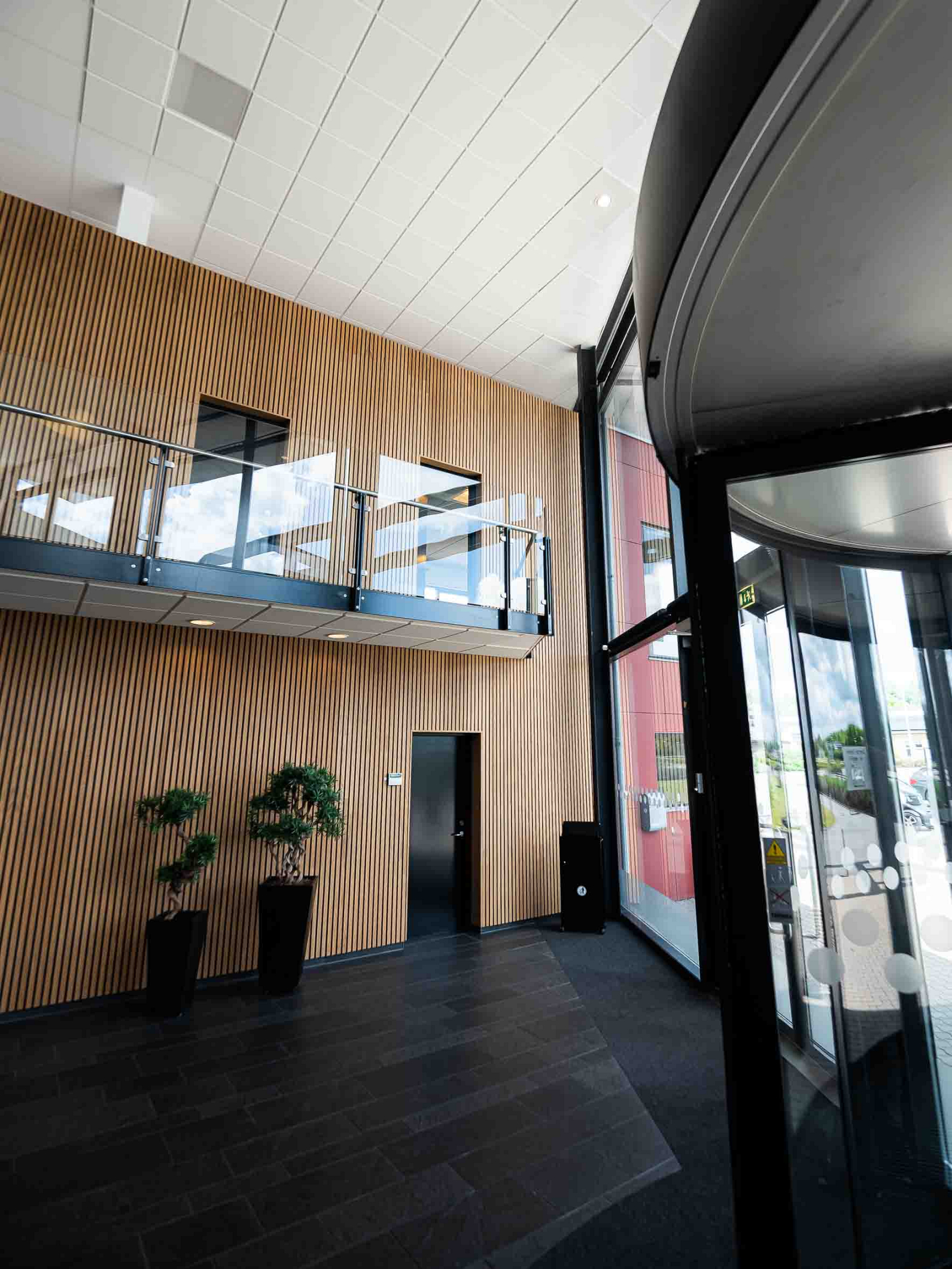 Das KulturCenter Skive wollte die Akustik verbessern und zudem dem gesamten Kulturzentrum ein grüneres Profil und ein einheitlicheres Design verleihen. Deshalb wurden an mehreren Stellen in den vielen Gemeinschaftsbereichen des Zentrums Akustikpaneele von I-Wood montiert.