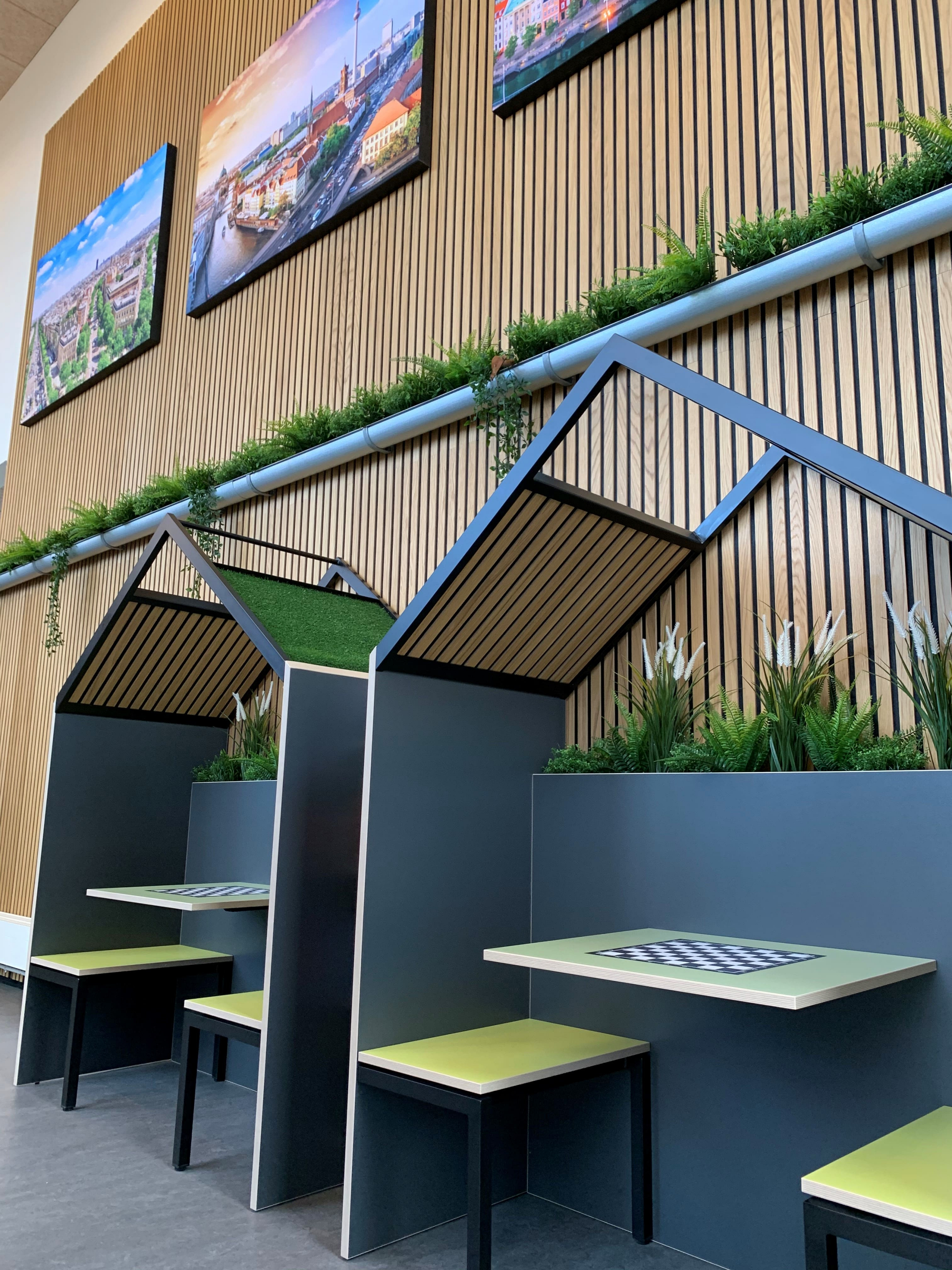 Gleichzeitig nutzte Ultima K die Möglichkeit, kreativ mit den Paneelen zu arbeiten, und gestaltete unter anderem ein von einer Skyline inspiriertes Relief an einer der Wände.